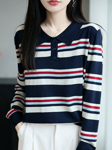 【厂家直供】早秋新款圆领条纹针织上衣女时尚百搭短款毛衣外搭衫