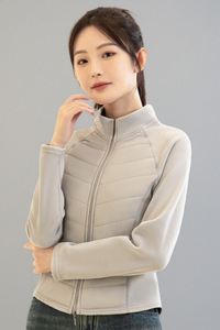 短款轻薄运动拼接绵羊毛夹层女2025秋冬针织户外健身外套石墨烯