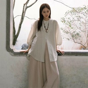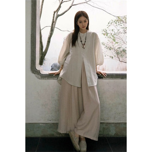 【观山也】新中式国风衬衫女夏小个子禅意风佛系大码女装慵懒套装