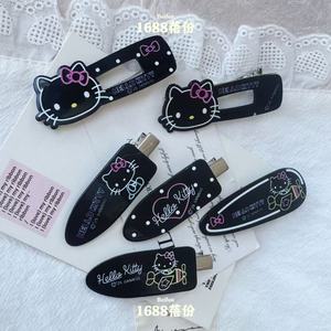 甜酷卡通黑色波点KT猫发夹甜美可爱风刘海夹前额儿童碎发夹侧边夹