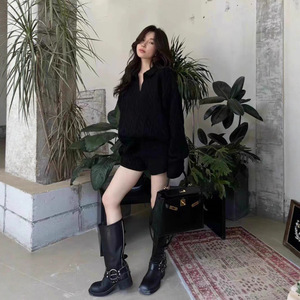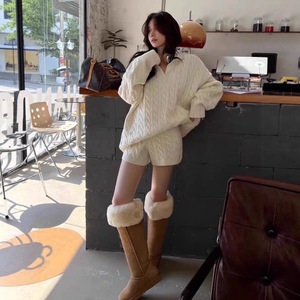 6139【绵羊绒两件套】气质款麻花设计毛衣+短裤小李-不退换
