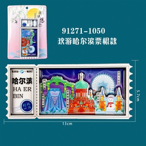 哈尔滨系列冰箱贴木质文创城市邮票创意旅游纪念品磁吸冰箱贴批发