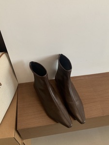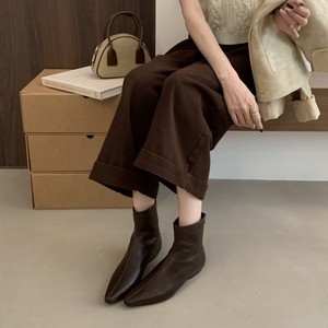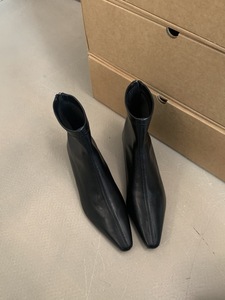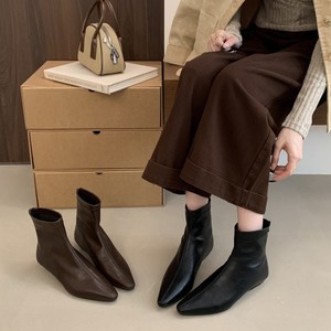 2025秋冬新款欧美复古极简拉链尖头坡跟内增高踝靴女老钱风短靴子