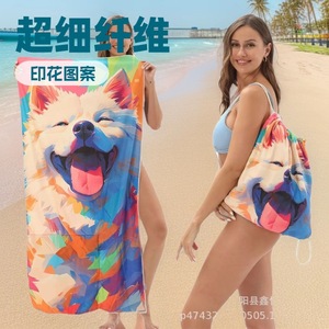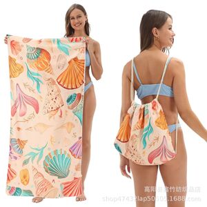 现货跨境沙滩一体包收纳便携背包印花毛巾吸水沙滩巾家用柔软浴巾