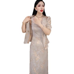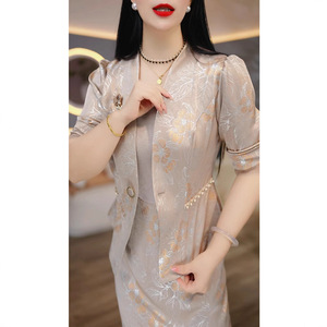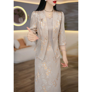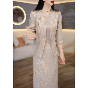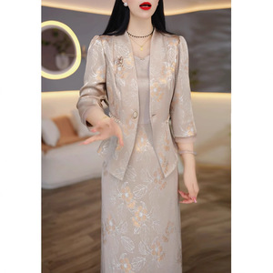 2025春秋新款妈妈气质背心裙女套装轻奢高级感七分袖两件套连衣裙