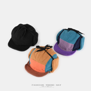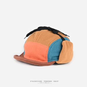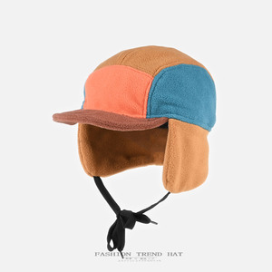 日系拼色摇粒绒鸭舌雷锋帽男女秋冬季保暖骑车护耳帽子系带飞行帽