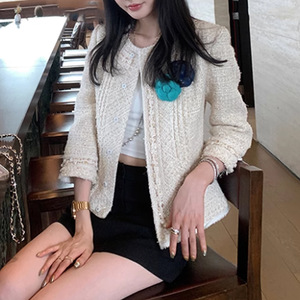2025新款粗花呢小香风外套女秋季高级感圆领小个子复古短款上衣女