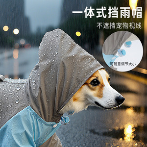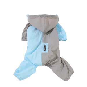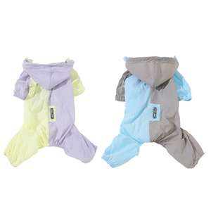 拼色轻量四腿服可牵引带帽雨衣中小型猫犬四季通用外出防雨冲锋衣