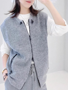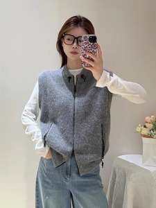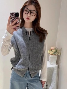 哥家商场同款女装2025秋季百搭马夹上衣抽绳双头拉链圆领坎肩针织