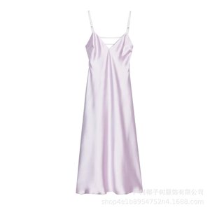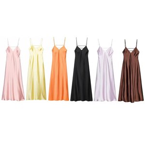跨境外贸批发2025秋季新款欧美风百搭丝缎质感迷笛吊带连衣裙