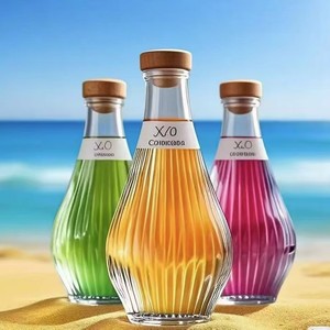 杨梅青梅新款375ml条纹果酒瓶一斤装自酿瓶泡酒瓶果汁分装瓶