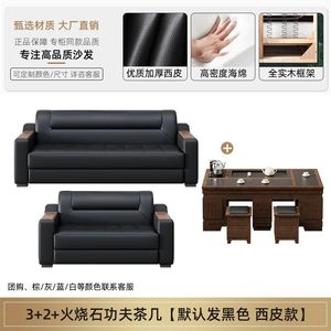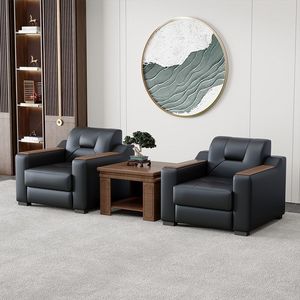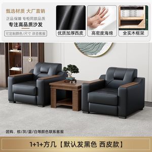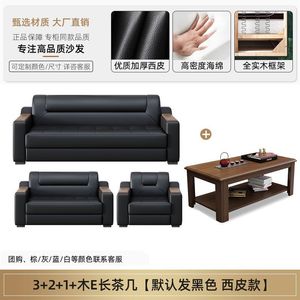 真皮办公室沙发简约现代商务会客接待休闲三人位茶几组合套装皮艺