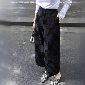 深圳南油原创早秋新款高腰花苞提花阔腿裤 女装气质显瘦百搭神裤