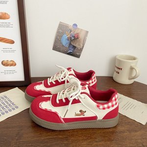 学生面包鞋女2025秋季新款高颜值厚底系带小白鞋时尚拼色休闲板鞋