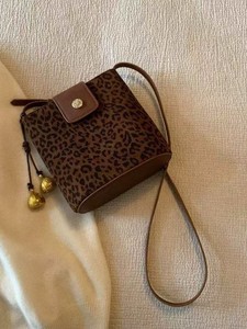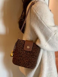 2025同款时尚 磨砂豹纹水桶包复古通勤百搭单肩包包女斜挎小包
