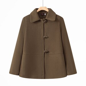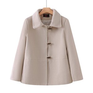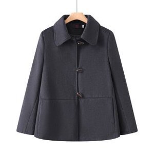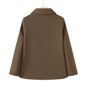 妈妈装仿双面呢短款外套女秋装中老年女西装领高档毛呢格子开衫