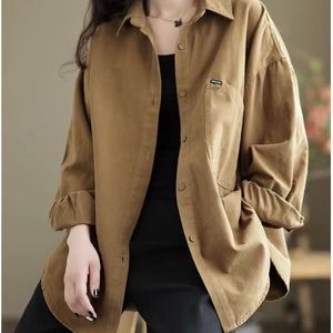细密灯芯绒长袖翻领衬衫女宽松外套上衣