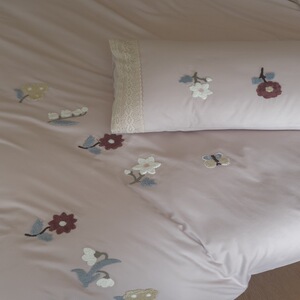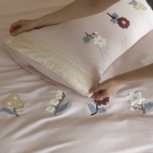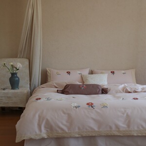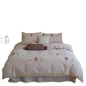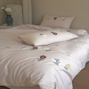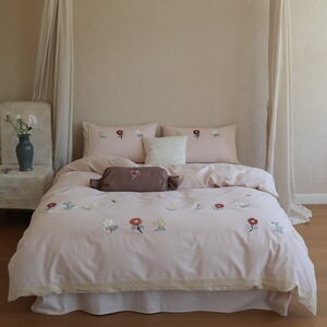 浪漫法式全棉100S磨毛四件套小花朵毛巾绣蕾丝花边被套秋冬保暖