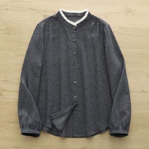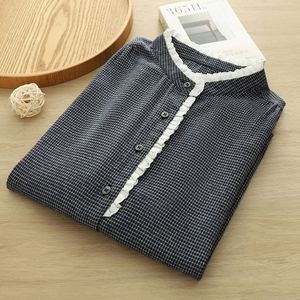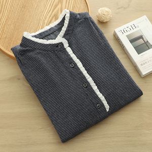 厂家直销 2025秋季新款立领花边磨毛 格子开衫女士长袖衬衫批发