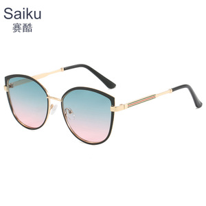 新款女士欧美潮流大框猫眼太阳镜渐变色墨镜跨境金属眼镜Glasses