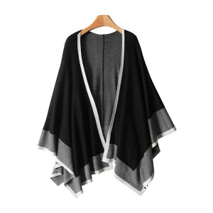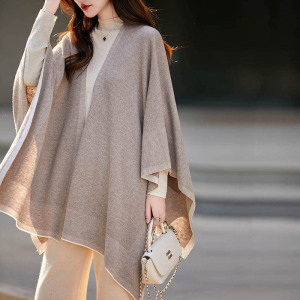 高级感撞色斗篷披肩女春早秋新款慵懒风保暖围巾韩版针织羊毛外套