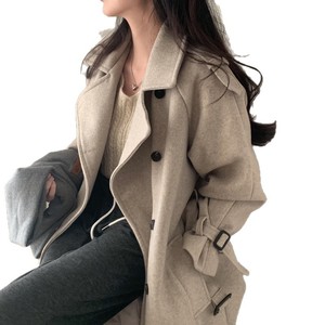 韩国chic秋冬复古气质双排扣系带收腰显瘦过膝长款毛呢外套大衣女