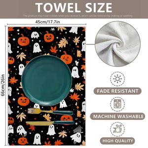【temu爆款万圣节毛巾】厨房抹布超细纤维印花装饰品礼物节日毛巾