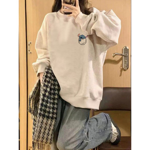 灰色卫衣女秋冬季2025新款小个子宽松慵懒风设计感小众无帽上衣