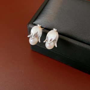 法式复古银针花朵珍珠耳钉时尚简约百搭耳环小众高级感气质耳饰女