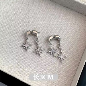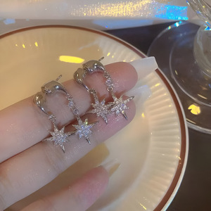 韩国ins风八星芒耳钉女款轻奢甜美气质款耳饰超闪锆石双吊坠耳环