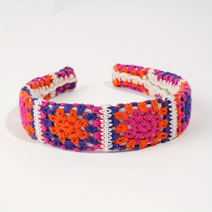 森系田园新款宽边针织发箍刺绣头箍发卡花朵发箍高颅顶编织头饰