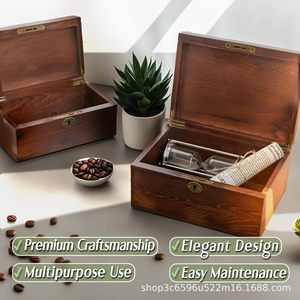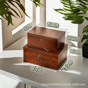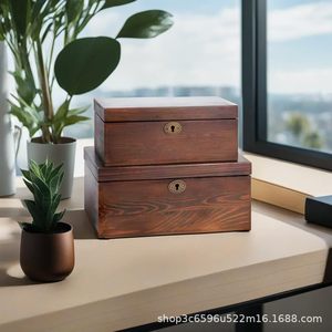 带锁木质收纳盒复古实木储物箱首饰文件整理盒桌面杂物收纳小木箱