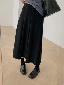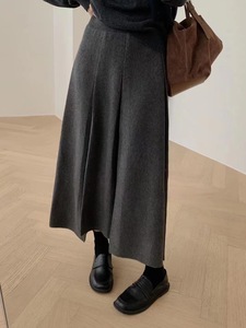 灰色羊毛针织感半身裙女秋冬字长裙子中长款高腰百褶裙