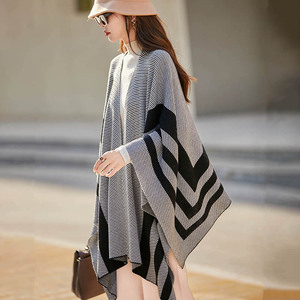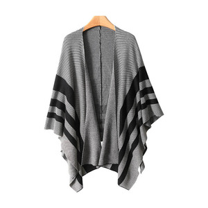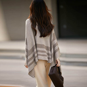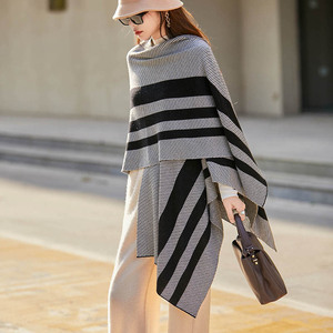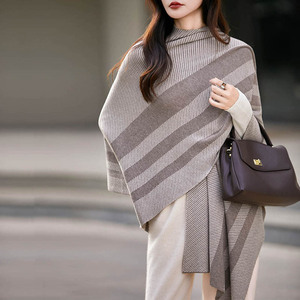 羊毛混纺护肩时尚条纹围巾秋冬保暖外搭披风女士休闲百搭针织披肩
