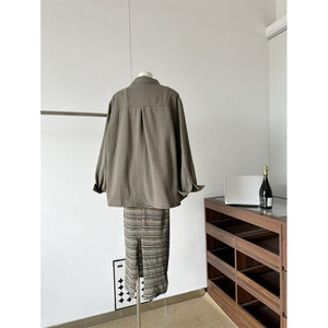 塞纳复古慵懒polo领长袖牛仔外套休闲套装条纹吊带连衣裙两件套