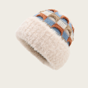撞色格格帽冬季新款加厚加绒针织帽百搭显脸小骑车保暖护耳帽批发