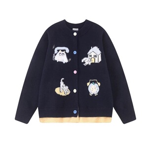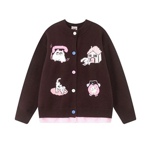 韩系chic巨好看的卡通提花针织开衫女装2025秋季软糯甜美减龄上衣