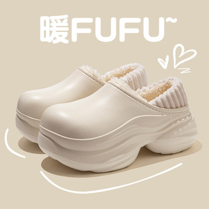 厚底外穿高跟棉鞋女棉拖女居家棉拖鞋女秋冬季加绒包头拖女保暖鞋