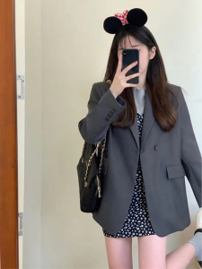 2025年春秋新款灰色小西装外套女今年流行西服小个子小众休闲上衣