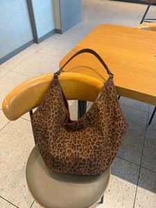 韩系百搭豹纹托特包包女2025秋冬季新款复古通勤水桶大容量单肩包