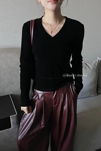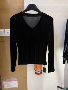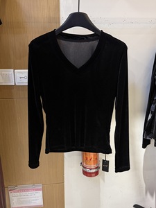 2025秋季简约V领时尚百搭丝绒T恤女高级感黑色修身显瘦网纱打底衫