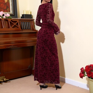 JY25442DGO跨境新款秋冬季长裙气质修身植绒欧美热销长袖连衣裙