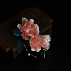 新款手工非遗缠丝绒花软簪国风新中式牡丹花发饰配饰复古旗袍头饰
