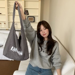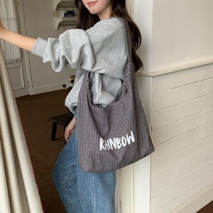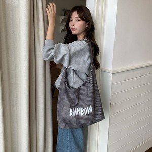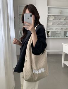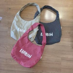 韩国东大门春秋新款设计师简约印花条纹帆布包女ins百搭单肩包冬