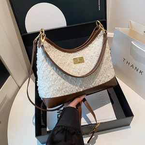 超火小众毛呢包包女2025秋冬季新款百搭斜挎包时尚通勤单肩腋下包