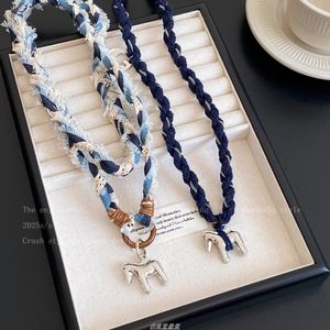 牛仔布艺银色木马编织项链女2025新款轻奢毛衣链小众独特时尚配饰