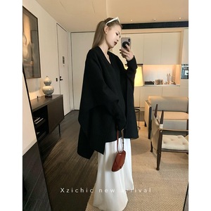 Xzichic澳洲羊毛斗篷披肩式毛呢外套女优雅贵感呢子大衣秋冬新款