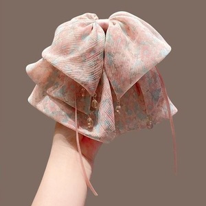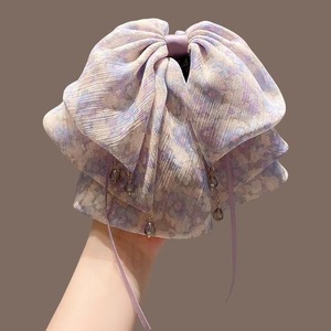 多层吊坠飘带碎花蝴蝶结抓夹女后脑勺盘发马尾夹半扎发卡夹子头饰
