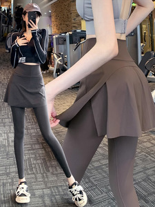 假两件运动裙裤女大码秋季外穿高腰遮臀户外跑步训练健身瑜伽长裤