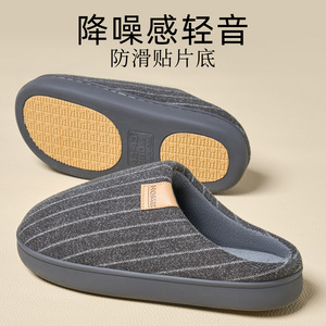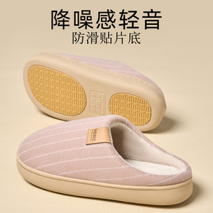 简约条纹棉拖鞋女款室内家居秋冬防滑加绒保暖拖鞋冬季男士家用